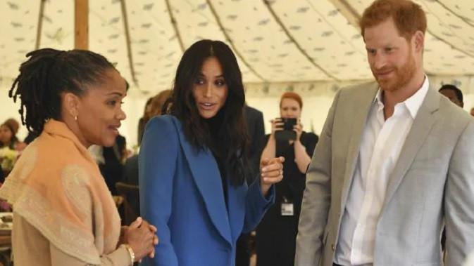 Usai mengenalkan sang ibu dan suaminya kepada pengurus utama amal, angin kembali 'usil' ke Meghan. Rambut hitam panjangnya yang tergerai dibuat berantakan. Beruntung, Pangeran Harry yang berdiri di belakangnya merespons baik. Ia pun dengan senang hati merapihkan rambut sang istri, meski sedang berada di hadapan publik.
