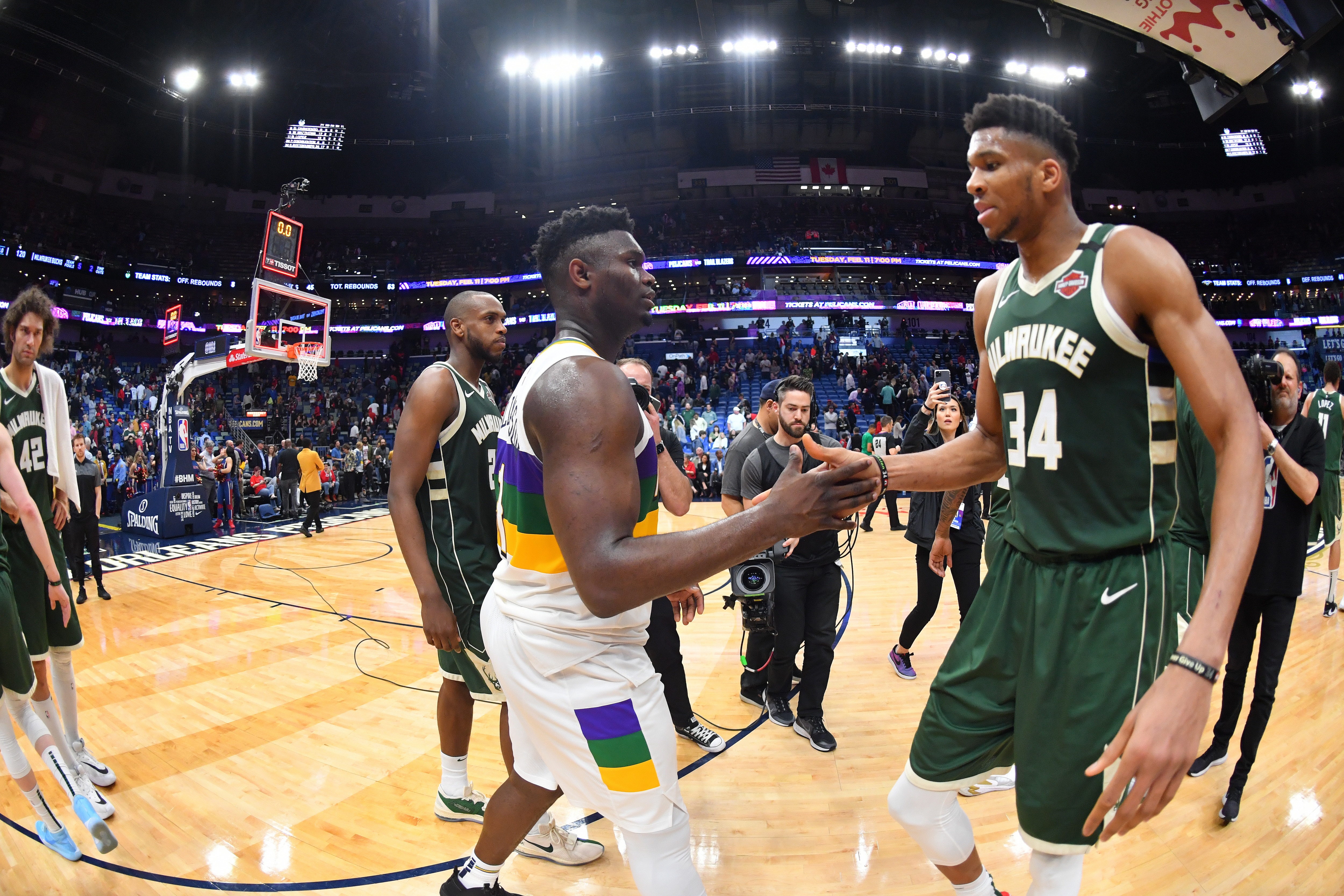 Antetokounmpo and Williamson had a few meetings at the rim, with the Bucks forward stopping the rookie late in the second quarter: