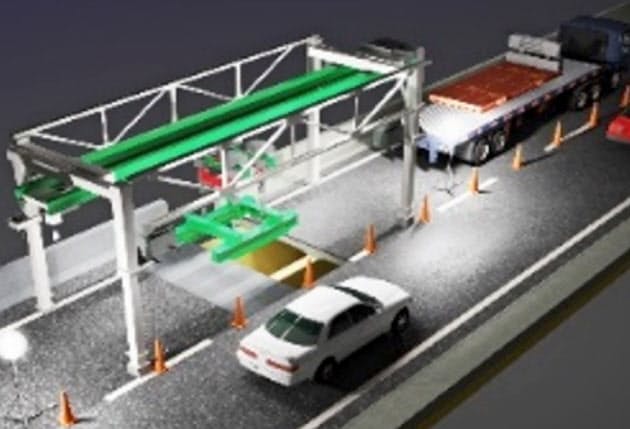 中日本高速道路(NEXCO中日本)は大林組と共同で、高速道路の工事渋滞を抑える工法を開発した。路面の張り替えに使う機械を大型クレーンから移動式の特殊機に換えるなどして、昼夜連続で2車線だった工事中の通行規制を夜間のみ1車線に減らす。6月から中央自動車道の一部区間で試行しており、名古屋近郊や首都圏に広げる見通しだ。