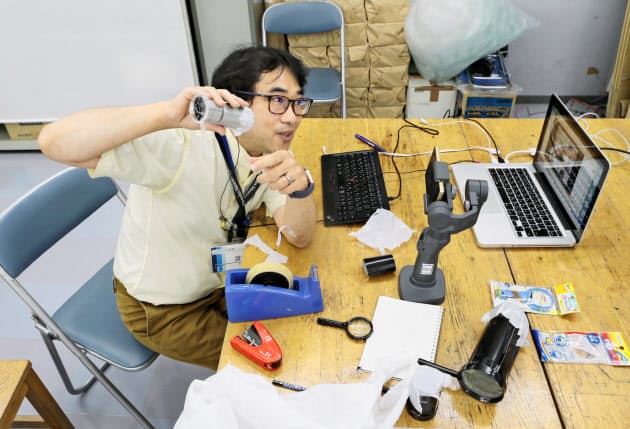 「画像が見えましたか」。8月20日、大阪市立科学館(北区)で学芸員の渡部義弥さん(52)が開いた小中学生向けのオンライン講座。現在のカメラの原型となる「カメラ・オブスクラ」を厚紙やポリ袋などを使って制作した。小学生9人はパソコン越しに積極的に質問し、見よう見まねで完成させると「楽しかった」と笑顔を見せた。