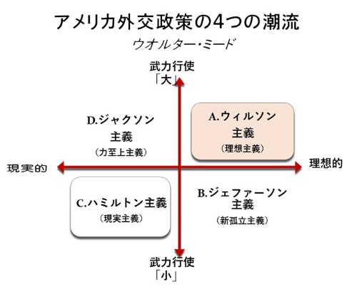 ウィルソン主義との名称は、ウッドロー・ウィルソン米大統領(当時)にちなみます。第1次大戦後、国際連盟の設立に貢献した人物として著名です。