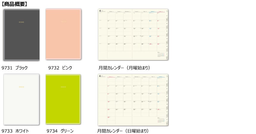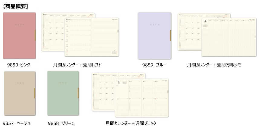 4月始まり版では、昨秋発売の1月始まり版で好評だったログ機能が豊富な「NOLTY エクリ Plus」シリーズや、タスク管理に特化した「週間ブロック」タイプの新商品がラインナップに加わりました。また、気軽に使えて持ち運びにも便利なマンスリータイプの新商品や、学生に人気の「スコラ」シリーズの店舗限定の新色などが登場します。