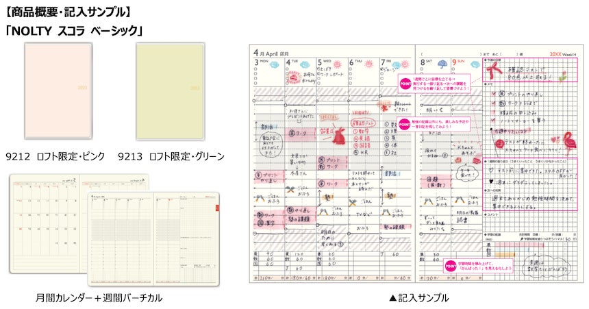 「NOLTY スコラ」シリーズは、「自ら学び、考え行動し続ける力の育成」をコンセプトに、中高生向けに開発された手帳で、現在、全国の中学校・高等学校980校に導入されています。近年では市販品としても発売を開始し、「受験勉強などの学習管理に使いやすい」と、毎年多くのユーザーから人気を集めています。2023年4月始まり版では、ロフト限定企画としてオリジナル表紙カバーを採用した新商品が登場しました。