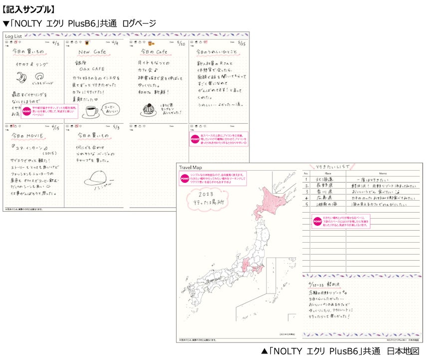 「NOLTY エクリ PlusB6」シリーズは、愛用者の多い「NOLTY エクリ B6」シリーズに、年間の計画や目標が書ける「プランページ」や、さまざまな記録を気軽に残せる「ログページ」や白紙の地図を加え、1月始まり版で新商品として登場しました。ライフログ機能が充実しているため、「先々の予定を書くだけではなく、趣味や出来事の記録を残し、日々の暮らしを丁寧に楽しみたい」という記録重視のユーザーに好評で、とくに20-30代の層から支持を集めました。