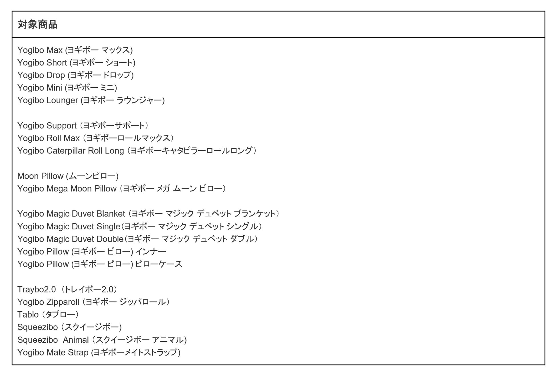 実施チャネル:全国のYogibo Store