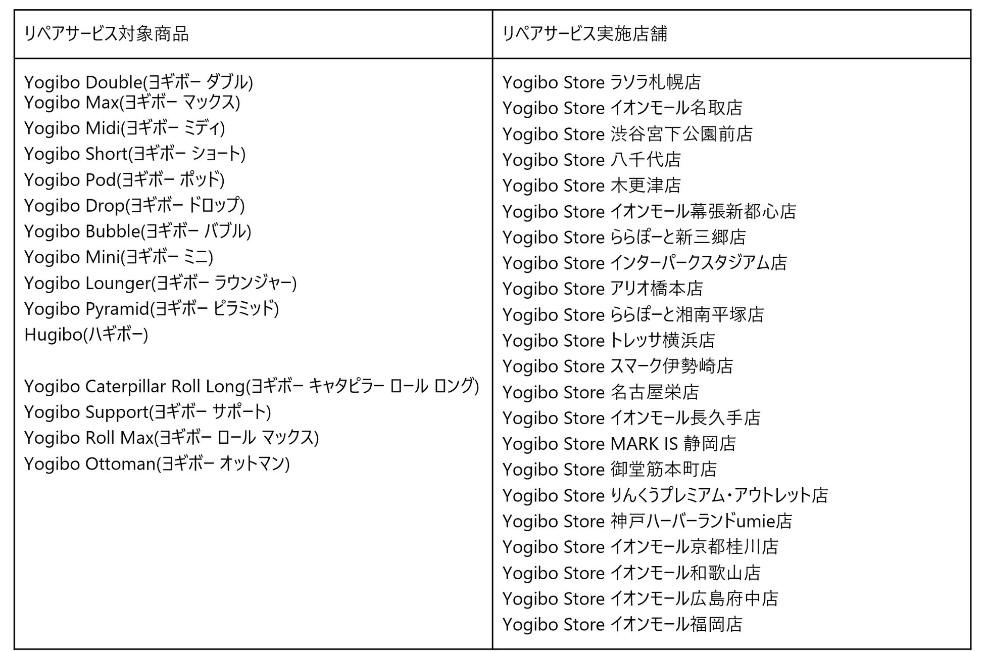 【リペアサービス詳細URL :https://yogibo.jp/pages/repair】